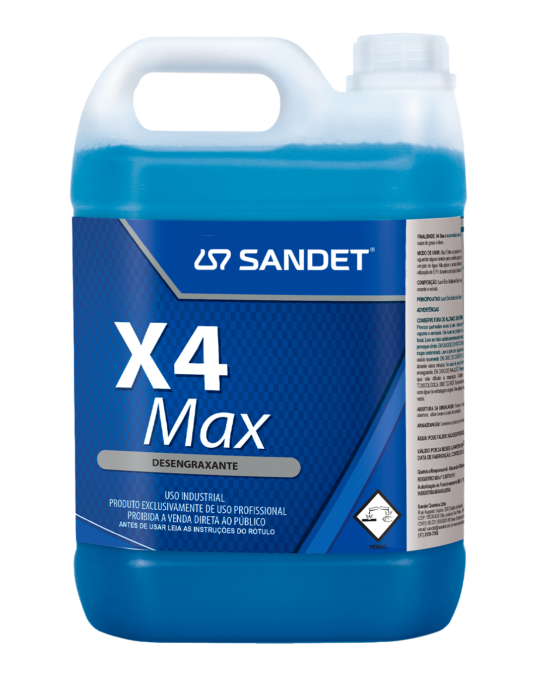 Desengraxante X4 Base ideal para lavagem de chassis, motor, rodas e pátios sujos de óleo e graxa. Produto alcalino, com concentração ideal em matérias primas que otimizam e reduzem o tempo de lavagem, eficiente na remoção de sujidades orgânicas.